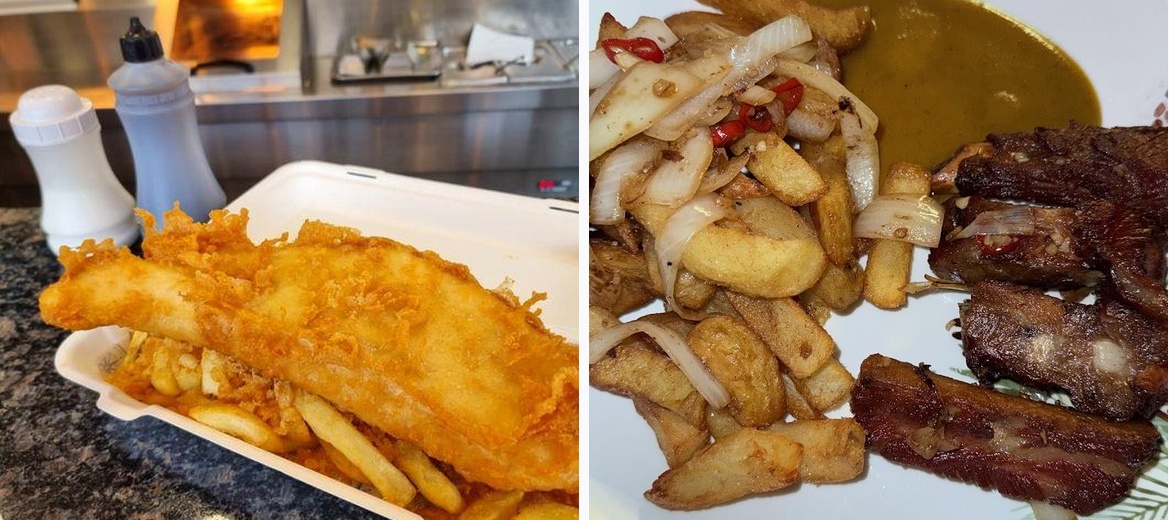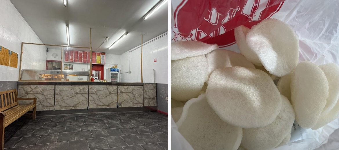 Nice little chippy, family run business. Friendly prices, welcoming and helpful staff! I tried the veggie spring rolls, salt and pepper dishes and crispy beef with Cantonese sauce. They were all tasty, good quality. Never had any issues. Also, their chicken- sweetcorn soup is nice (for me without the chicken)… Parking is easy around. I only gave 3 🌟 for the atmosphere because all the time the door is open and freezing cold while waiting for the food to get done.